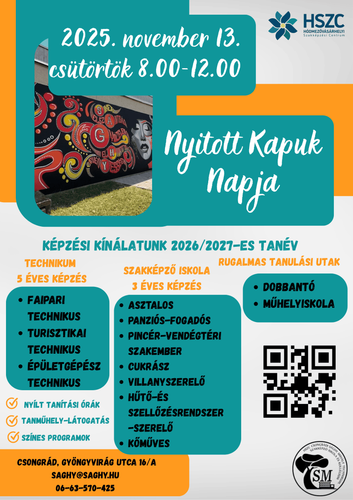 Várunk minden érdeklődőt, pályaválasztás előtt álló diákot és szüleit, sok szeretettel 2025. november 13-án, csütörtökön 8.00-12.00 -ig iskolánk Nyitott Kapuk Napjára‼